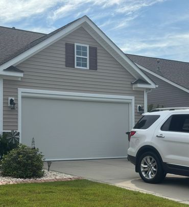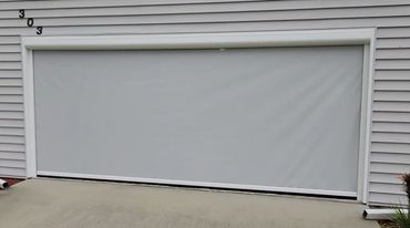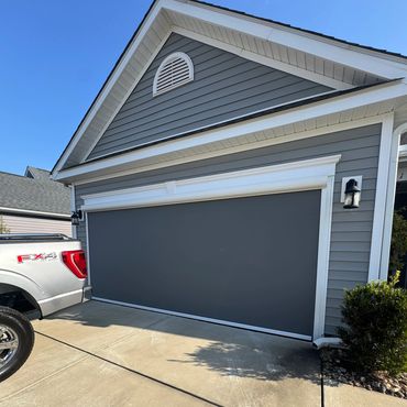 Motorized garage screen installation for a Myrtle Beach homeowner. “Jen in Myrtle Beach loved the way her motorized garage screen turned out. It transformed her garage into a shaded, bug-free space she can use every day.”